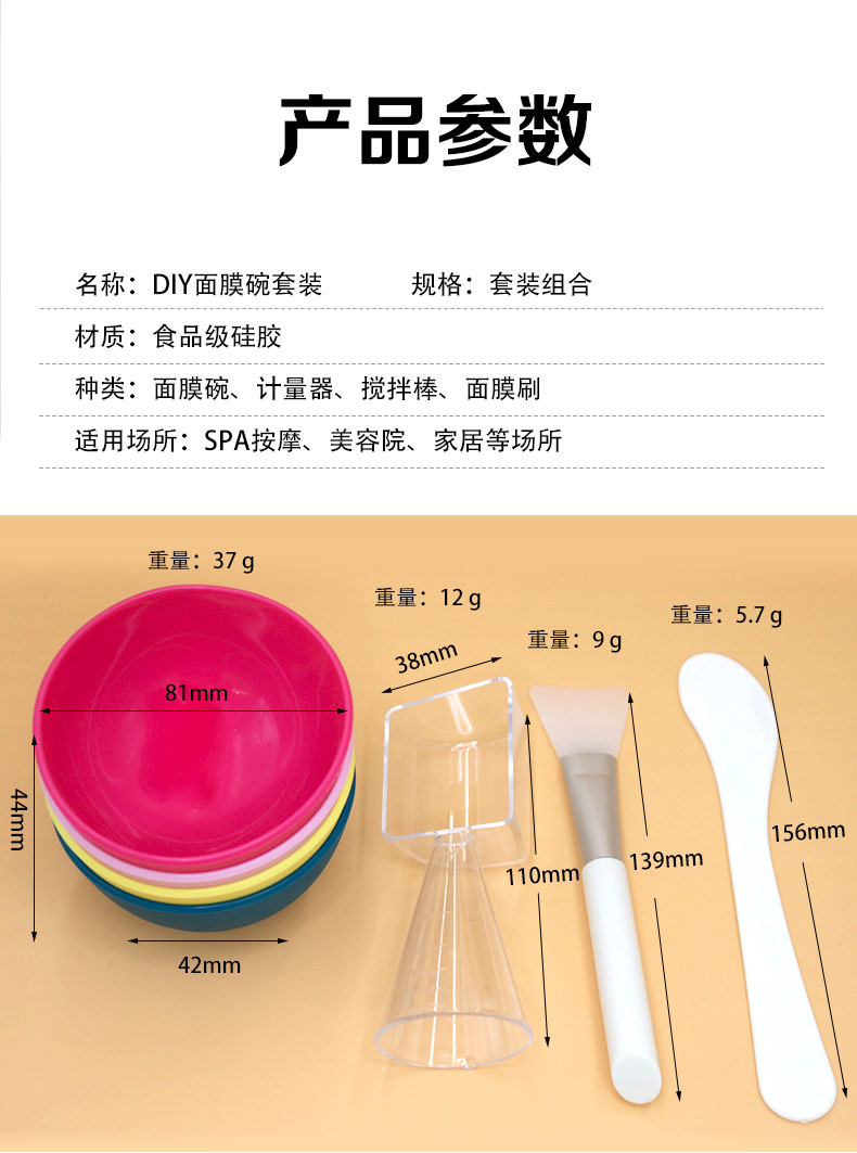 種類:面膜碗、計(jì)量器、攪拌棒、面膜刷